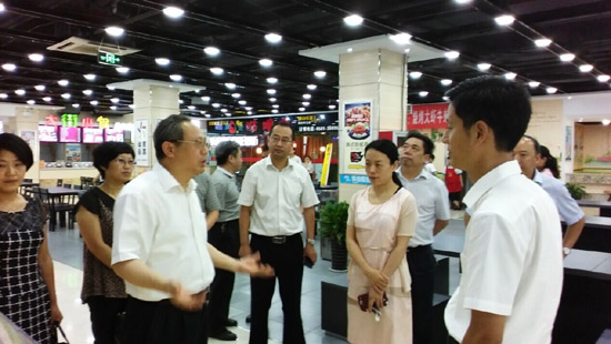 7月29日下午,省食藥監(jiān)局高懷荃副局長率食品消費處、食品監(jiān)督所主要負責同志在淮北市副市長王莉莉,市政府副秘書長周杰陪同下蒞臨鼎盛國際購物中心督查指導餐飲消費環(huán)節(jié)食品安全監(jiān)管工作,鼎盛商管公司董事長李杰、九極美食城及卡旺卡奶茶負責人陪同。