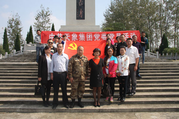 值中華民族抗戰勝利70周年之際,在國慶節期間的10月5日上午,天象集團副總裁、黨委書記陶靜春在副書記李杰、王安慧的陪同下前住安徽固鎮縣任橋鎮清涼村淮北西大門抗日烈士陵園參觀。集團公司近20名黨員參加了此次活動。