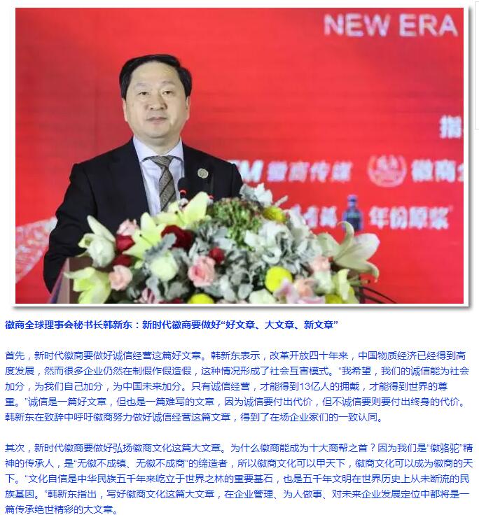 1月25日,以“新時代新擔當 新創造新未來”為主題的2017徽商全球理事會年會迎來第二天的精彩議程,在前一天的“徽商發展高峰論壇”“徽商投資考察安慶行”等環節之后,今天上午的議程更加凸顯了“徽商全球理事會”平臺作為“徽商優質資源整合者”的服務理念、資源優勢和責任擔當。