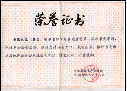 2004年安徽房地產(chǎn)業(yè)協(xié)會先進(jìn)會員