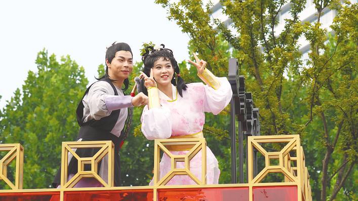 10月1日,“郭靖”和“黄蓉”在花车上向观众打招呼。(湖北日报全媒记者 张竞恒 摄)湖北日报全媒记者 孔妍 张竞恒 杨文漪国庆首日,襄阳火了。2025“河山添锦绣”文旅IP武汉城市大巡游中,来自湖北各
